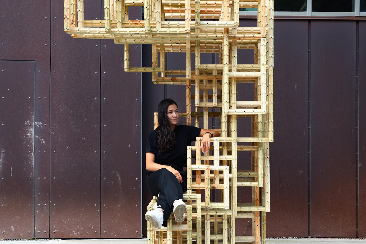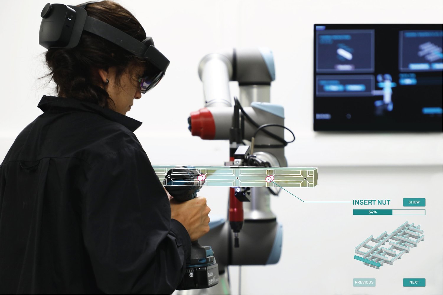 Below is an example of her work, which involves the repurposing of leftover timber from construction efforts. The various wood blocks are robotically fabricated and assigned individual QR codes that give them a unique material “dataset,” allowing tracking of individual pieces from one structure to another throughout reconfiguration. The assembly of the structures are done through human-robot collaboration in mixed reality.